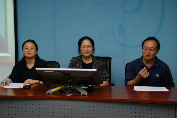 培训过程中,王桂珍向学员们阐述了本门课程的教学理念及课程建设思路,并就适合我国学生的教学方法与技巧与学员们展开了讨论。许罗迈教授就如何运用现代教育技术辅助英语语音的教学进行了演示,刘莹副教授就课程的教学模式回答了学员的问题。他们还就提升英语语音课程任课教师的教研能力的方法,以及加强课程教学团队建设的方法等问题进行互动式讨论,提出解决问题的方案和建议供学员参考。