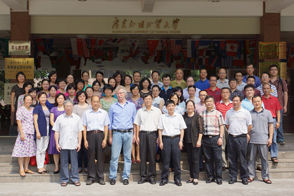 本网讯 6月19日下午14时,金沙城线路检测中心“英语专业基础英语系列课程国家教学团队“CECL与教学专题研讨会”在第七教学楼213室隆重举行。云山讲座教授Prof. Bamberg 受邀做了“Communication and Communicative Language Teaching”专题发言。校党委副书记陈建平、校教务处处长詹文都、金沙城线路检测中心院长温宾利、党委书记王斌莅临研讨会现场。学院一、二年级听说读写课程的全体任课教师,教学团队全体成员以及承担学院专业课教学的全体教师出席了本次研讨会。