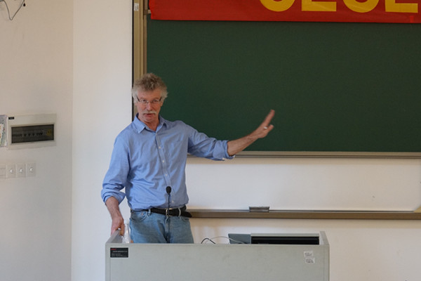 Prof. Bamberg发表了以“CLT”(Communicative Language Teaching)为核心内容的演讲。他认为近几年来,语言教学方法正发生着翻天覆地的变化。他提倡教师在授课过程中应改变课堂氛围,通过视频资料或肢体语言,将真实的情境融入课堂,同时要将教学融入生活。他阐述道,学生的身份不仅是学习者,也是一名研究者。他们在生活中会进行各种思考及小型研究。因此,教师应该尊重学生的发言权,让他们阐述自己的所思、所想、所得。此外,他还以“Foreign Language Space"为例,强调了小组讨论及发表演讲的重要性。