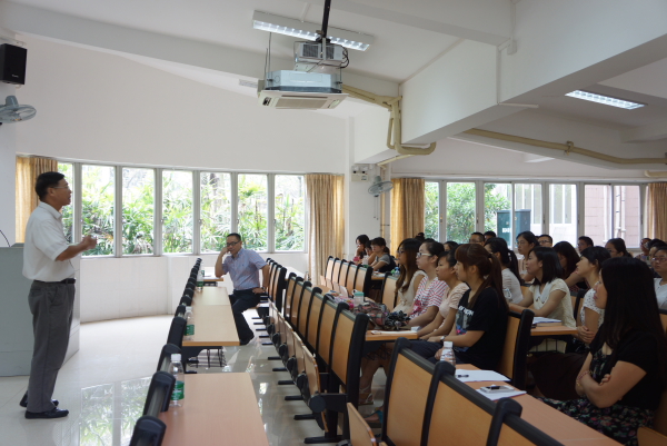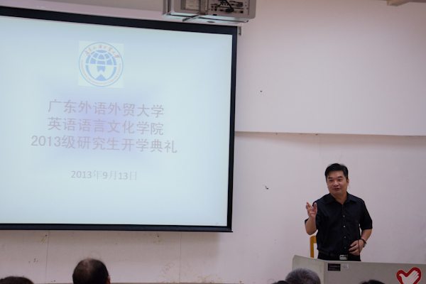 整个讲座持续了一个小时,陈教授生动的演讲赢得了同学们的阵阵掌声。最后,冯光武副院长总结了此次讲座,他提到自己的人文科学素养是在广外形成的,并希望在未来的三年,同学们在学业和生活上快乐、健康、有收获。