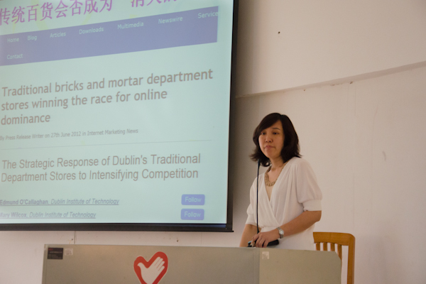 汉译英组审稿人谢谦一上台就表示“汉译英是很‘折磨’人的,希望同学们享受这种‘折磨’。”本次汉译英组的文本是《传统百货会否成为“消失的行业”》,与往届不同,此次翻译内容是非人文,非哲理性的。谢谦认为,对“传统百货”这一词语的解释没必要用啰嗦的表达,简单的“traditional department stores”即可。许多同学把“零售业的业态构成”翻译成“business types for retailing”等,谢谦看来,这种翻译欠规范,应该翻译为“retail formats”更为合理。她建议同学们翻译前要阅读大量相关的英语平行文本,收集地道的英语表达。最后,她希望同学们翻译时能抓住主要内容,按照英语的行文习惯构建句子。