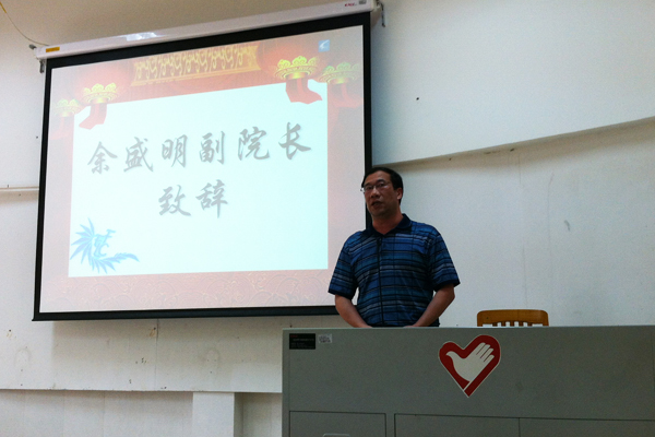 大会首先由余盛明致辞。他对参赛获奖选手表示祝贺,对老师和同学的辛勤劳动表示感谢。在他看来,获奖与否并不重要,重要的是参与的过程。笔译大赛不仅仅是一个赛事,还是教学的组成部分。笔译大赛作为传统赛事之一,举办了十多届,是我院学生专业水平的表现平台,希望日后能保持传统,越办越好。