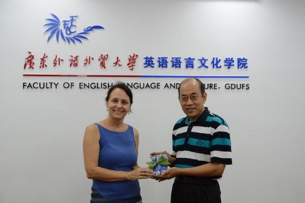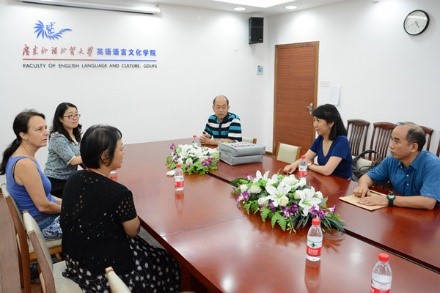 在座教师与Debbie合影留念后,双方在轻松的气氛中开始交谈。温宾利对Debbie为金沙城线路检测中心教学做出的贡献表示感谢,并希望她以后有机会再来中国进行参观和访问;Debbie则表示,自己十分适应在广外的生活,并且从学生身上学到了很多东西,回国后会介绍更多的老师来金沙城线路检测中心访问。她还向大家推荐了一本由外国学生写的关于在中国生活学习的书,她认为这本书写出了她的心声。大家还谈到了Debbie在中国最后两周的计划,并对她未来的生活给予了美好的祝愿。欢送会在愉快的氛围中圆满结束。