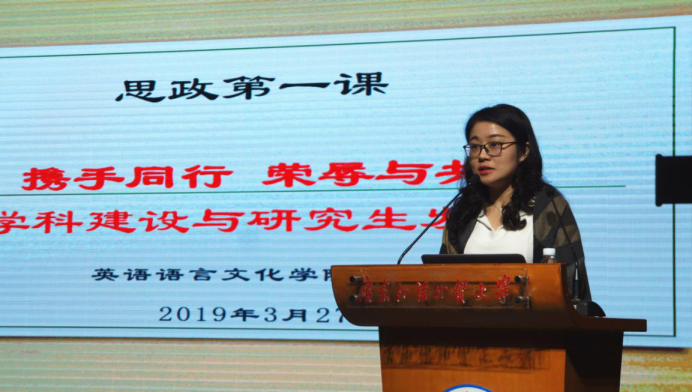 张欣以“携手同行、荣辱与共——学科建设与研究生发展”为题给研究生们上了新学期院长思政第一课。她分别从广外与“我”、金沙城线路检测中心与“我”和外国语言文学学科与“我”三个角度,阐述了学校、学院以及学科的历史与基本情况,希望同学们增强认同感和责任感,共享学科发展,共筑学科未来。