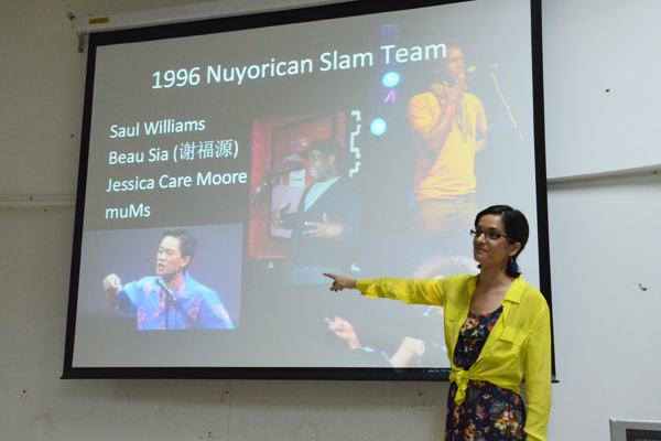 在讲座中,她还分享了口头诗人Beau Sia(谢福源)的口头诗。